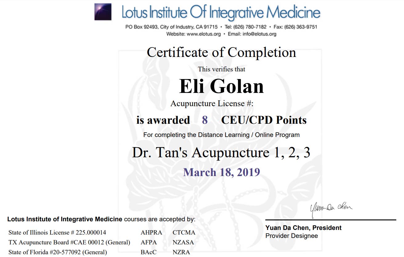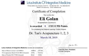 Certificate Dr. Tan's Acupuncture 1,2,3